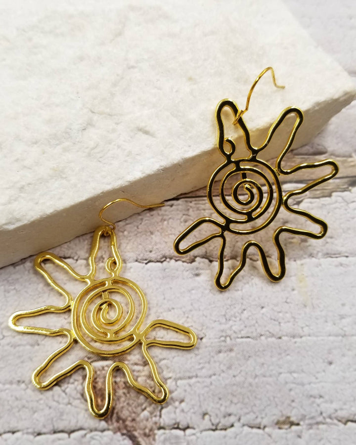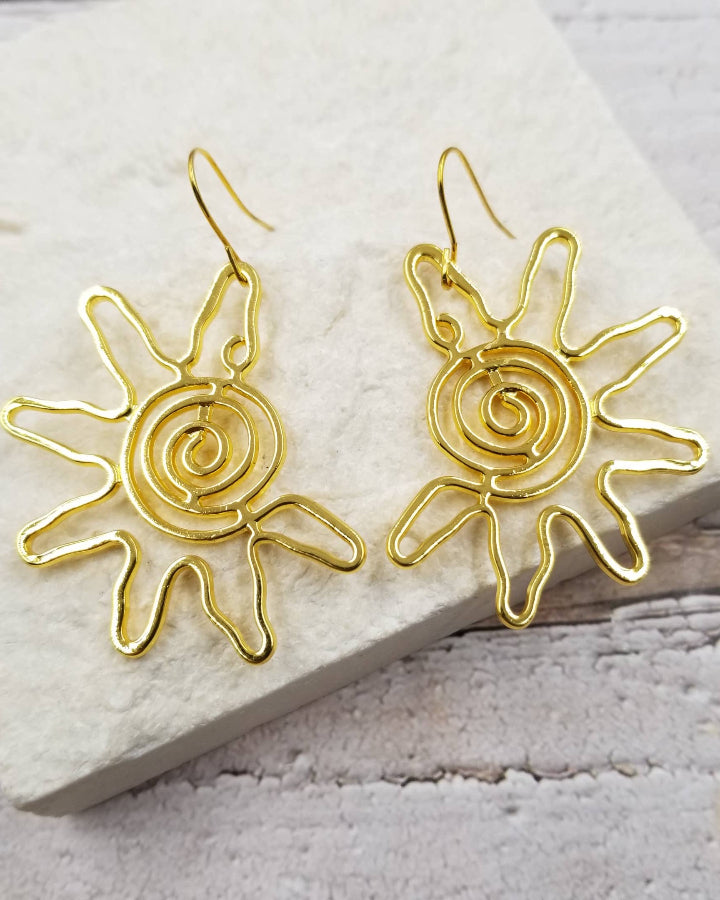 Wire Wound Golden Sun Earrings Size: 2.35" * 1.62" Weight :0.01 lb . Material:alloy. Color: gold