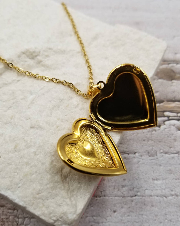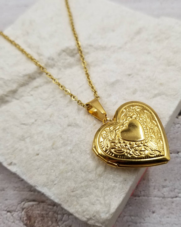 Open The Heart Photo Necklace Chain length: 13.5 " Pendant : 1.05 " * 1.05 " Weight :0.02 lb . Material: Stainless steel